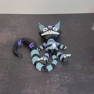 Creepy Stuffed Cat with Button Eyes & Curved Tail – 3D Printed Spooky Halloween Decor